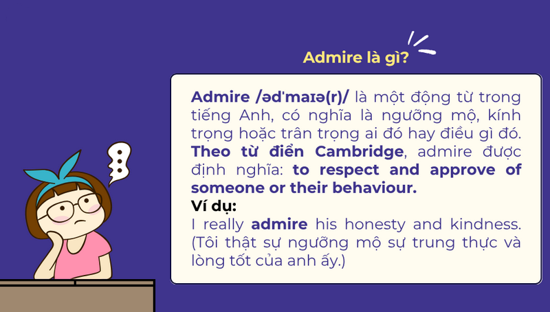 Tóm lại: Admire là động từ phổ biến trong tiếng Anh, dùng để diễn tả sự ngưỡng mộ ai đó hoặc điều gì đó.
