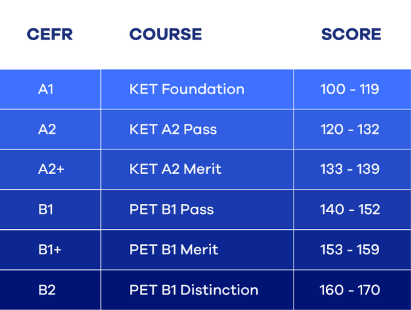 Chứng chỉ PET dành cho người học ở mức độ trung cấp. Sẽ có hai dạng chứng chỉ được cấp phổ biến cho người học như sau:
