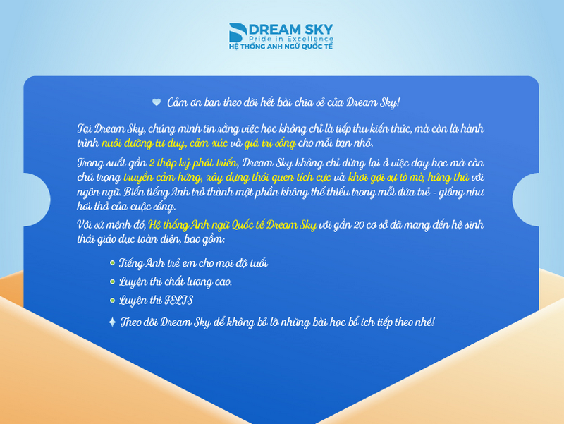 Dream Sky sẽ giúp bạn chinh phục chứng chỉ tiếng Anh PET: