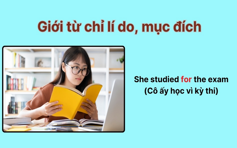 Giới từ chỉ lý do (Prepositions of Cause and Reason) là những giới từ dùng để chỉ nguyên nhân hoặc lý do khiến một sự việc xảy ra. Chúng có thể đứng ở nhiều vị trí khác nhau trong câu. Ví dụ như đứng trước danh từ (noun), cụm danh từ (noun phrase) hoặc V-ing để giải thích tại sao điều gì đó xảy ra.