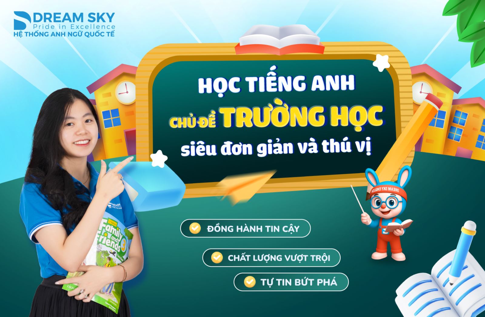Chính vì thế, học tiếng Anh chủ đề trường học không chỉ đơn giản vì gần gũi mà còn thú vị vì bé có thể khám phá, trải nghiệm và ứng dụng ngay trong môi trường quen thuộc của mình.