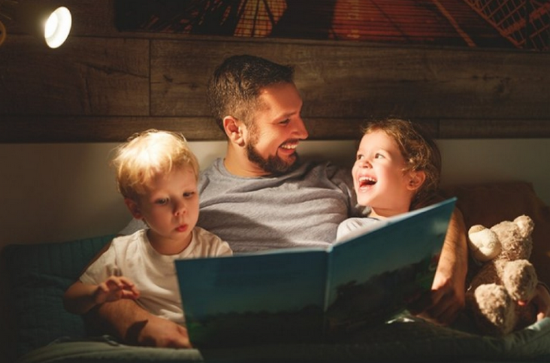 Việc học tiếng Anh có thể thực hiện ngay trên giường ngủ thay vì ngồi ở bàn học. Ba mẹ thậm chí có thể tắt điện phòng ngủ nhưng vẫn có thể cùng bé học tiếng Anh một cách hiệu quả. Thứ mà ba mẹ cần chuẩn bị sẽ là những thiết bị hỗ trợ như sách báo, truyện tranh, đài hoặc điện thoại…