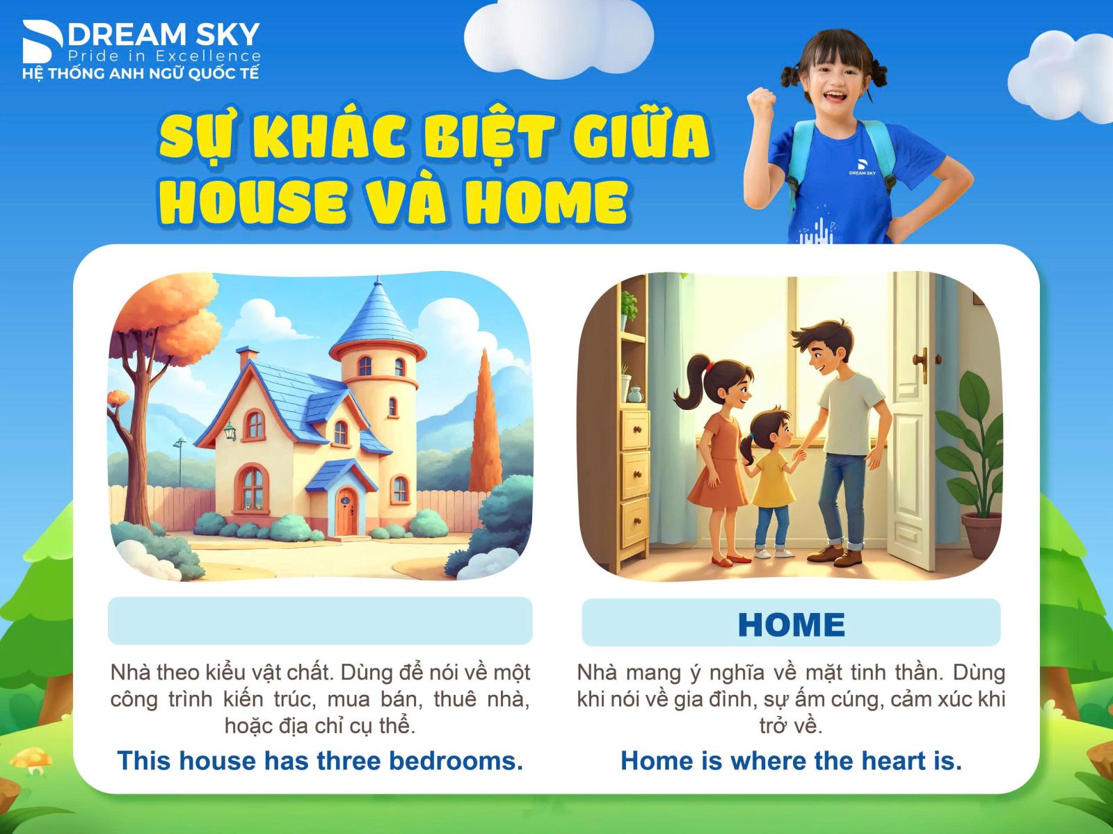 House và Home đều có nghĩa tiếng Việt là nhà. Tuy nhiên, cách sử dụng lại khác nhau đấy nhé và sẽ có sự thay đổi về nghĩa của từ vựng. Dream Sky sẽ giúp bạn phân biệt House và Home để không bị mất điểm khi làm bài kiểm tra nhé.